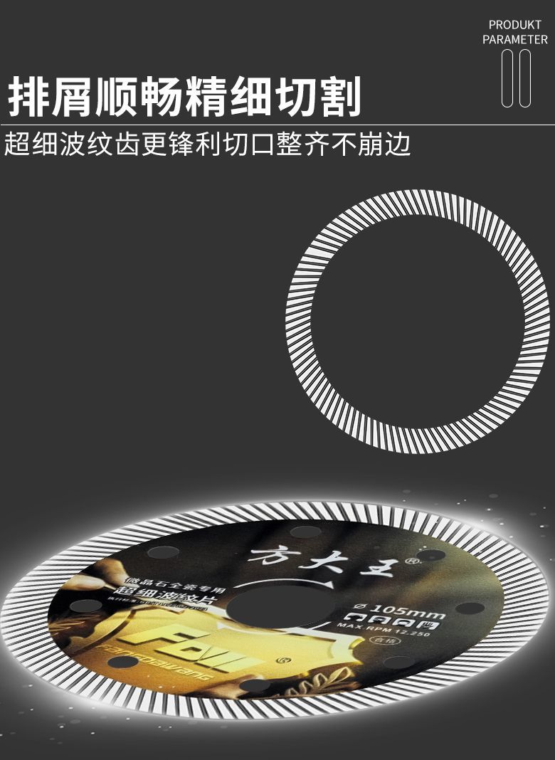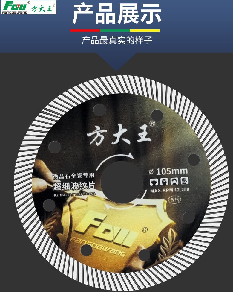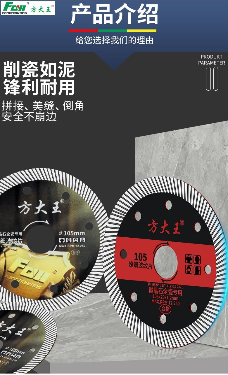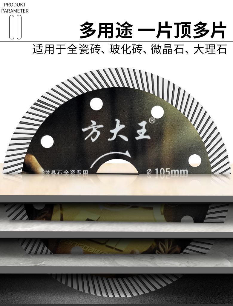 方大王瓷砖干切锯片角磨机不崩边金刚石玻化砖岩板全瓷超薄切割片