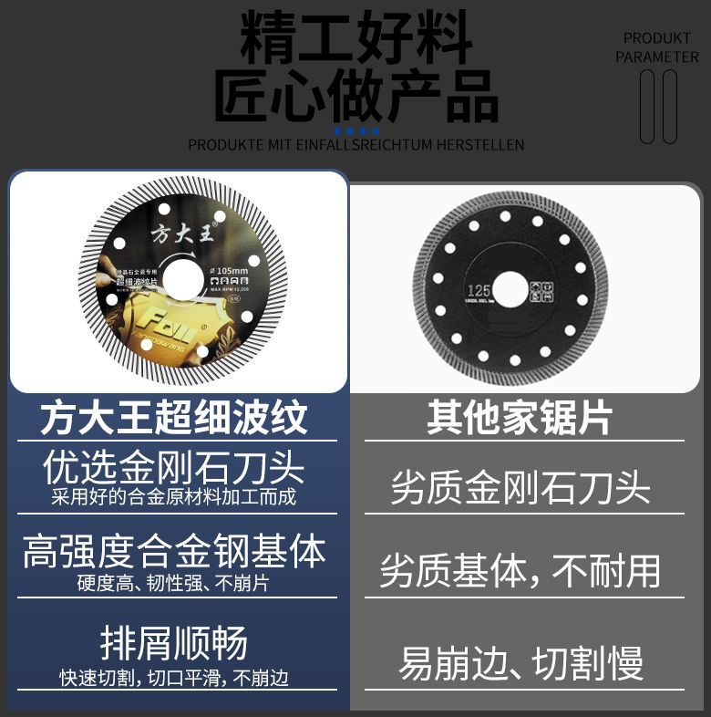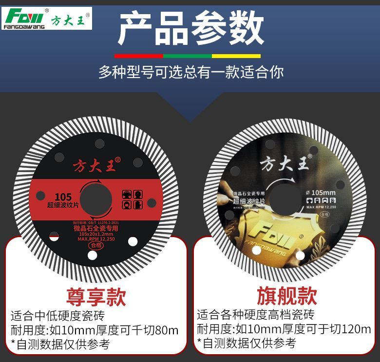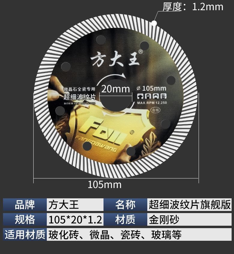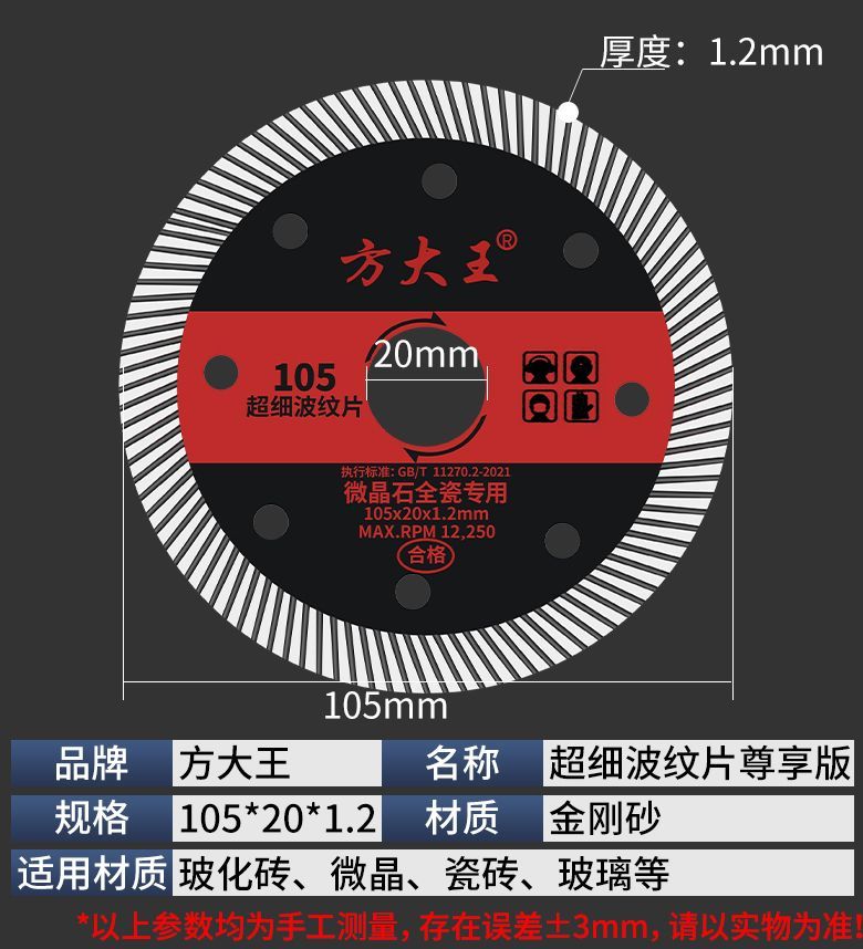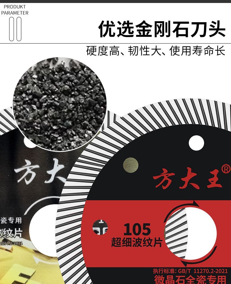 方大王瓷砖干切锯片角磨机不崩边金刚石玻化砖岩板全瓷超薄切割片