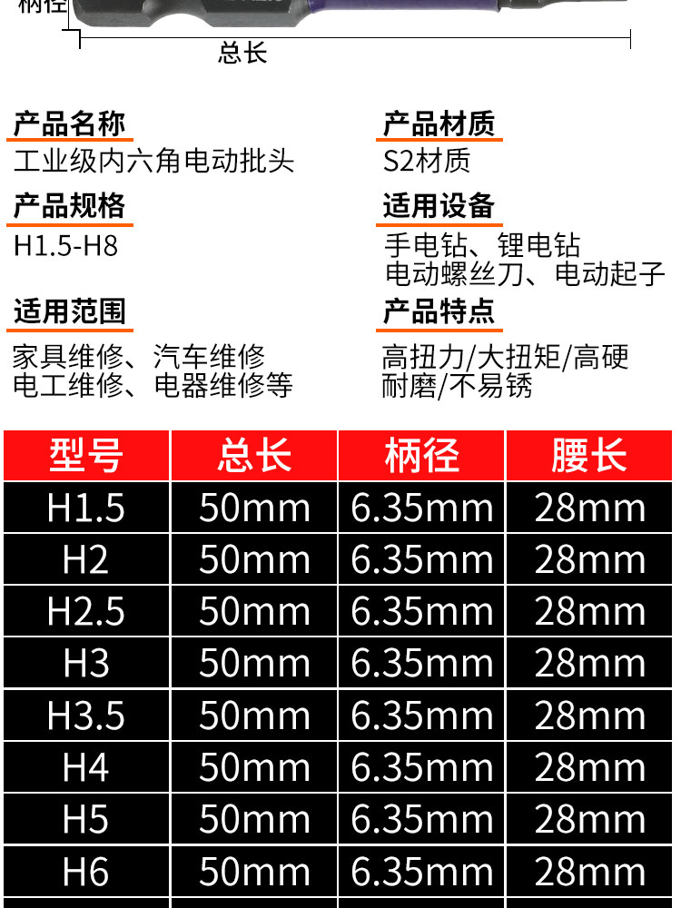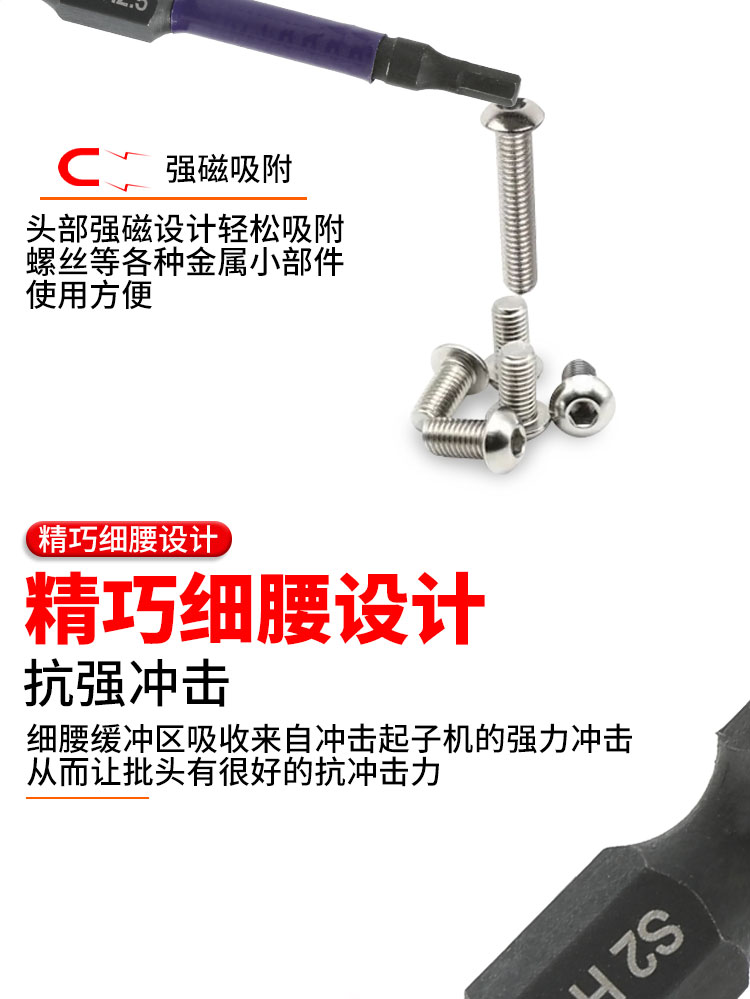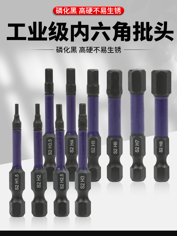 高硬度单头缩杆内六角批头气动电动螺丝刀批头强磁披头起子头